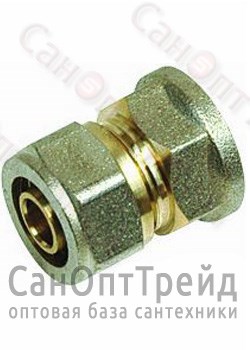 Фитинги обжимные предназначены для соединения полимерных и металлополимерных труб используемых в системах холодного и горячего водоснабжения, водяного отопления. Муфта обжимная (компрессионная) предназначена для перехода с цангового соединения на внутреннюю резьбу. Корпус - латунь марки CW617N. Соответствует требованиям: ГОСТ Р 52134—2003. Рабочее давление: 16 бар. Максимальное давление: 25 бар. И температуру 110 °C Вся сантехническая продукция сертифицирована.